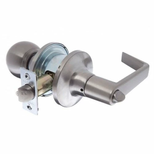 - Inside lever free at all times, snib inside, locks and unlocks outside knob.