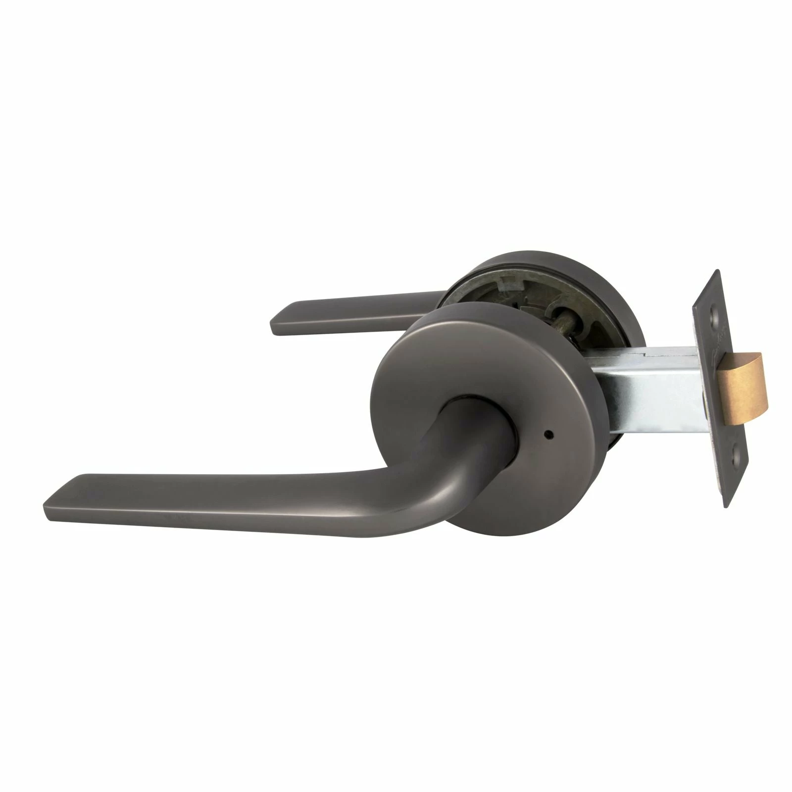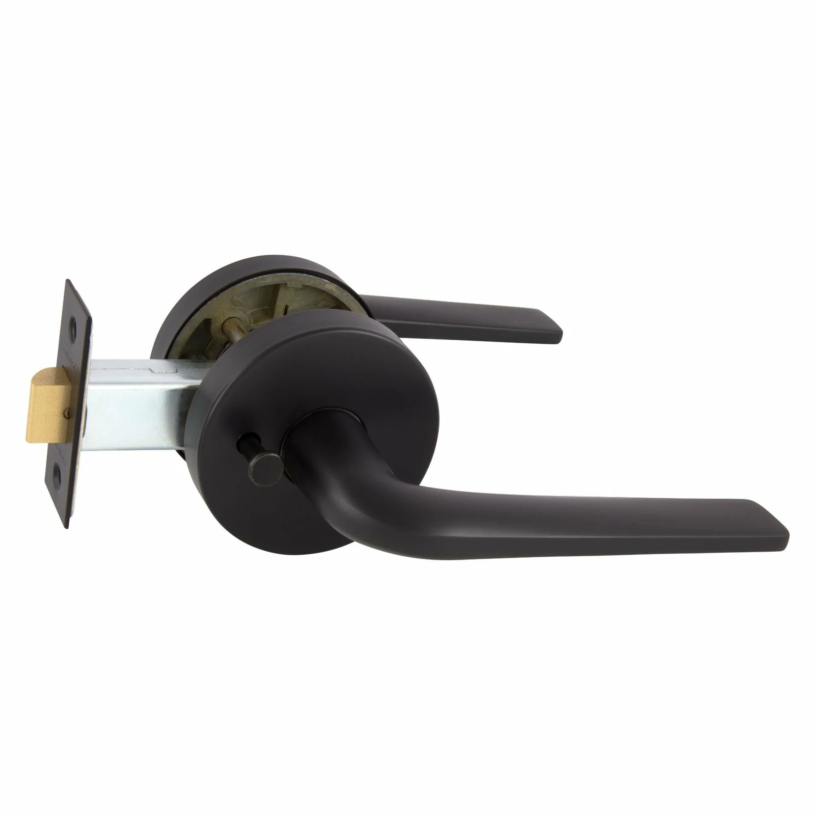 - Privacy leverset for internal doors that need to be locked from the inside such as bathrooms. Includes a discrete privacy pin and external emergency unlocking feature.