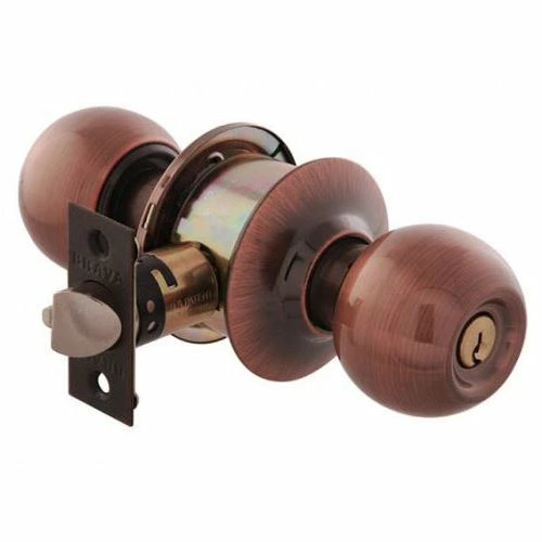 - Inside opened by knob when free, key locks or unlocks both knobs but does not retract latch.