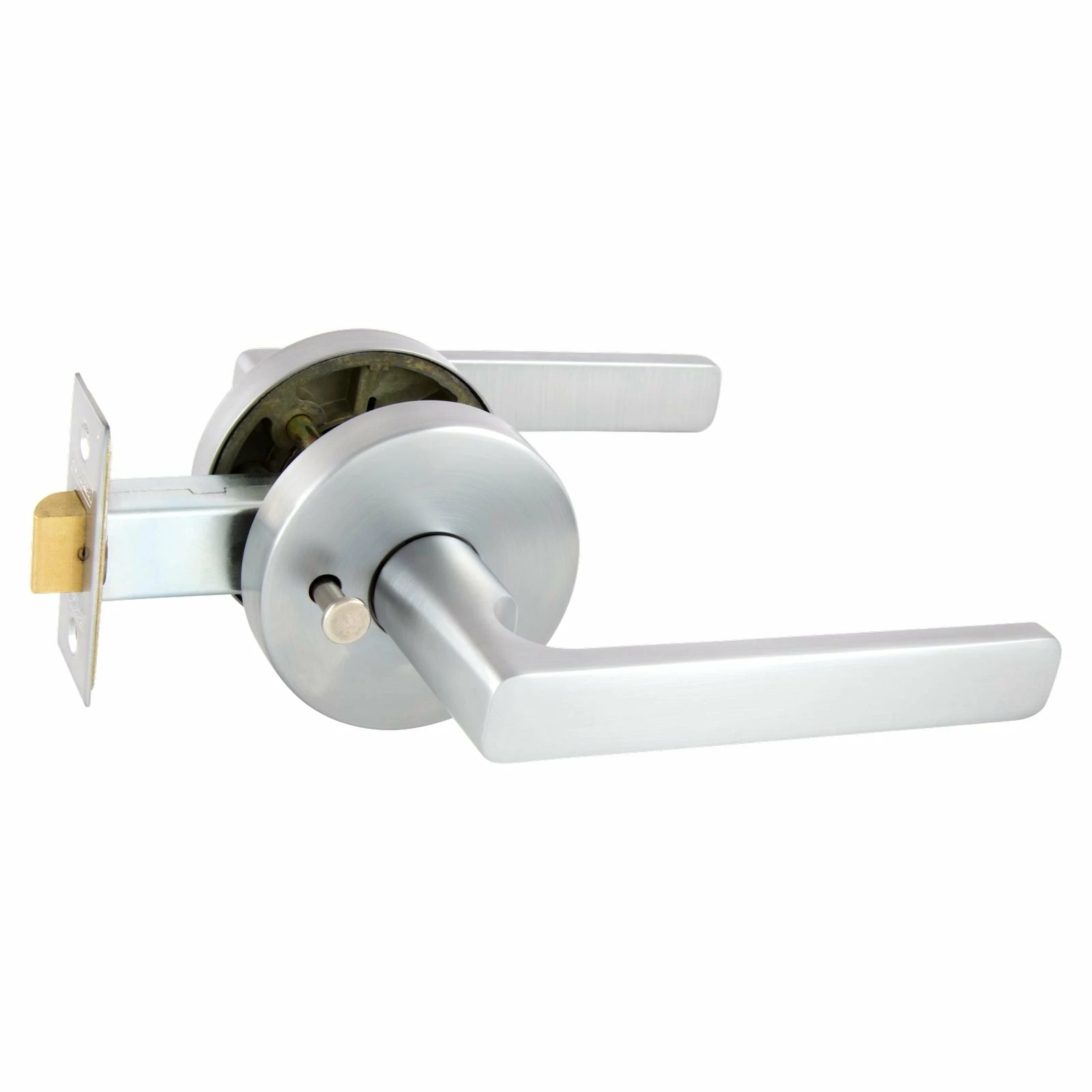 - Privacy leverset for internal doors that need to be locked from the inside such as bathrooms. Includes a discrete privacy pin and external emergency unlocking feature.