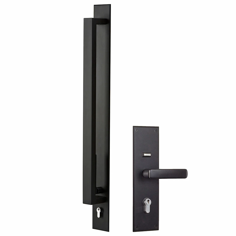 The Gainsborough Trilock Omni features a 600mm pull handle and world renowned 3 in 1 operation – deadbolt, lockset and passage functions all in the one lock. The external lever on the Trilock Omni is cleverly positioned behind the pull handle for added aesthetics. The internal side of the lock features a stylish flat plate Tri lock Eclipse and offers a range of matching internal levers. 60mm backset. Note: Gainsborough Trilock Omni features pull handle, escutcheon plate and lever on the external side and lever and escutcheon plate on the inside.
