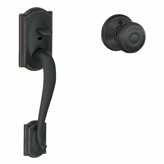 - All Schlage handlesets feature adjustable through-bolts that slide up and down 38mm, eliminating the need to patch or re-drill your door