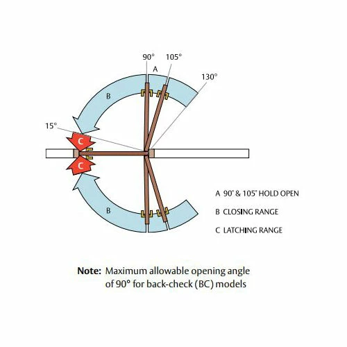 * Maximum allowable opening angle of 90° for back-check (BC) models