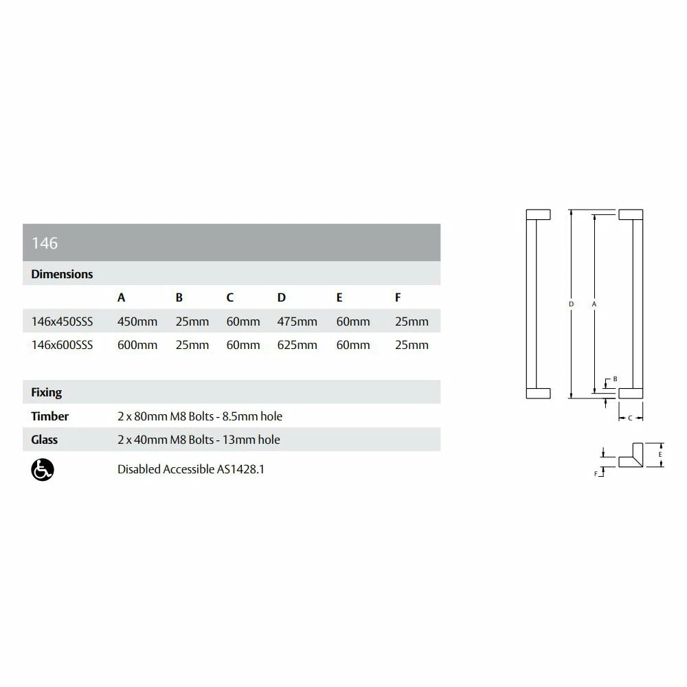 Lockwood Entrance Handles are suitable for use on timber or aluminium frame as well as glass doors; making them the ideal choice for commercial, industrial and residential applications.