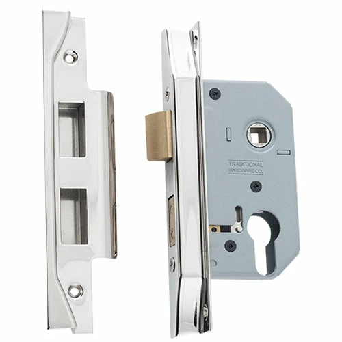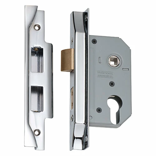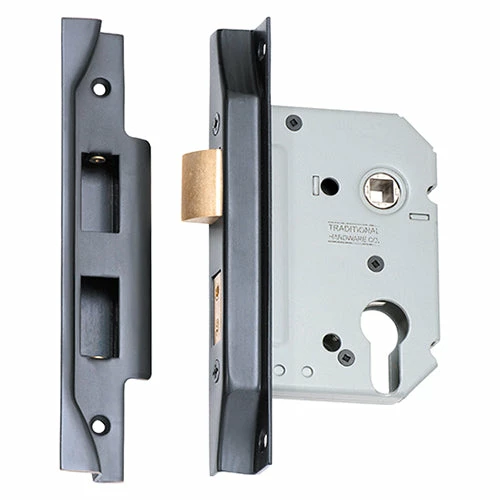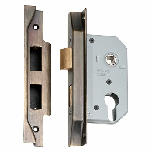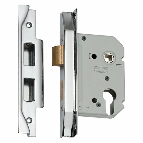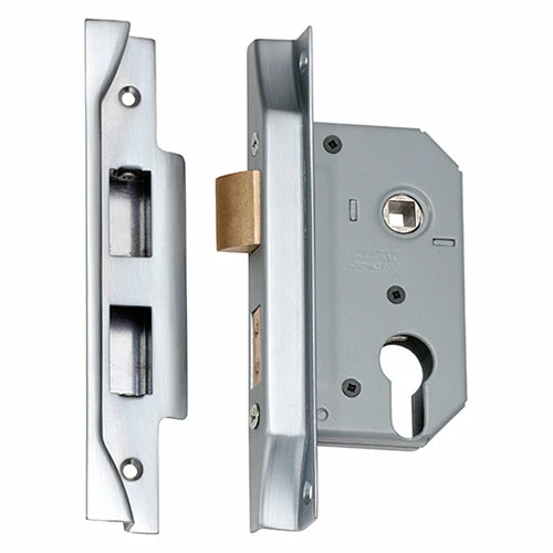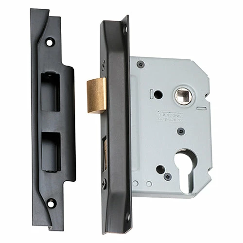 High Security. Solid brass face and striker plates. Available in 10 finishes. Reinforced steel pins. Reversible tongues. 13mm rebate. Tested over 130,000 cycles. 46mm and 57mm backsets. Fitting instructions supplied.