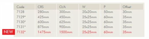 ITEM VARIANTS SHOW CENTER TO CENTER MEASUREMENTS (SEE TABLE)